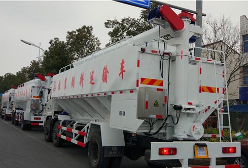 此次用戶訂購的這批散裝飼料運輸車是于農(nóng)歷新年前訂購的,也是該用戶前期定購2臺液壓飼料運輸車后又再次訂購的電動絞龍散裝飼料運輸車。該車采用東風(fēng)天錦小三軸系列底改裝,康明斯210馬力發(fā)動機(jī),11.00R20鋼線胎,標(biāo)準(zhǔn)分4倉。