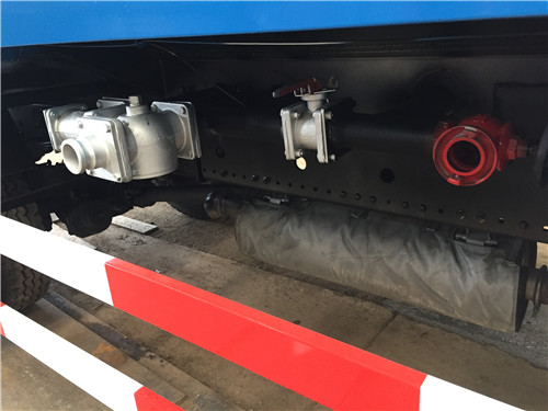 在應(yīng)急消防時,其操作程序是:調(diào)節(jié)三通球閥 G 到如圖位置(注意:三通球閥凹坑所對方向關(guān)閉),關(guān)閉不銹鋼球閥 A、B、C、D、E 和鋁合金球閥 H,打開消防栓 I 和不銹鋼球閥 F,踏下離合,打開取力器開關(guān),慢慢松開離合(千萬不可過快,否則將會損壞取力器或變速箱),使水泵開始工作,即可通過灑水炮和消防栓出口應(yīng)急消防,停止工作后開關(guān)回位。