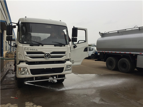 4、東風專底灑水車另一種組合方式就是將前沖改為鴨嘴噴頭,后灑位置安裝三彎前沖噴頭,主要用于路面沖洗、灑水壓塵,適用于市政環衛東風專底灑水車。