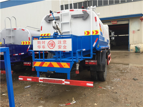 3.【東風多利卡灑水車】罐體容積6-8方,整車外形尺寸(長×寬×高):6995×2300×2550(mm) ,總質量:11495(kg),帶國家免征公告。配備:前沖、后灑、綠化高炮、大功率自吸自排灑水車!適合于:工程澆水、小區綠化、環衛保潔!