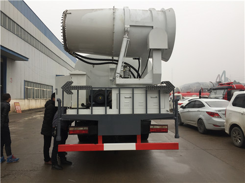 多功能抑塵車又稱為:霧炮車、噴藥車。霧炮車噴射的水霧顆粒達到微米級,能有效分解空氣中的污染顆粒物、塵埃等,在霧霾天氣下用于降塵除霧,可以有效的緩解霧霾,其節(jié)水的特性同樣也可以用作灑水車使用。霧炮車還可以降塵、灑水,把樹上的灰塵洗掉。霧炮車噴灑出的水霧與懸浮在空氣中的PM2.5和PM10粉塵顆粒吸附、聚合、沉降,達到消除污染物和減霾的目的。盡管霧炮口徑巨大,但其噴灑耗水量僅為傳統(tǒng)灑水車的兩到三成,覆蓋面積和除塵效率卻高出20倍。既提高效率,也避免路面積水影響交通。