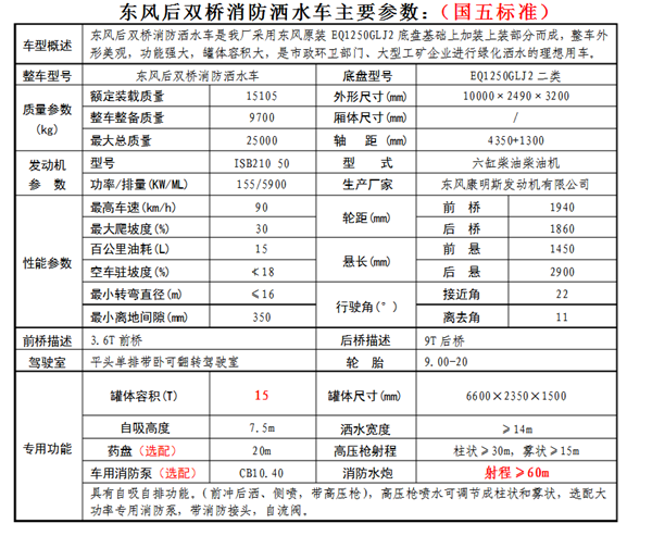 東風T5后雙橋消防車(可裝15-20噸水)。