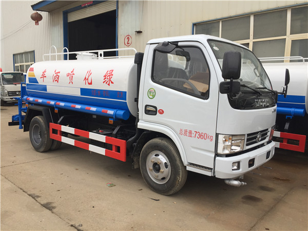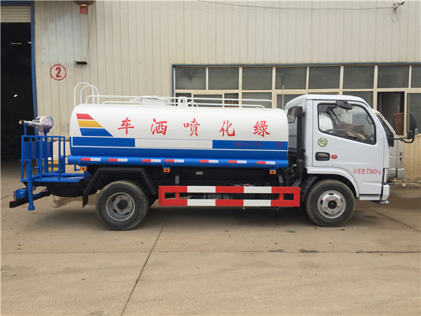 小多利卡5方灑水車(罐體容積:5立方):該車采用東風(fēng)朝陽(yáng)柴油發(fā)動(dòng)機(jī),一汽錫柴柴油發(fā)動(dòng)機(jī)和昆明云內(nèi)柴油發(fā)動(dòng)機(jī),白色前翻駕駛室,7.00-16輪胎,汽剎, 5檔變速箱,2噸前橋,4噸后橋,整車外形尺寸:長(zhǎng)×寬×高(mm) 5990/1980/2390,總質(zhì)量(kg)7360,額載質(zhì)量(kg)3870。罐體有效容積:5噸,帶國(guó)家免征公告。