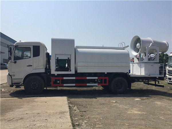 抑塵車又稱為:霧炮車、噴藥車。霧炮車噴射的水霧顆粒達到微米級,能有效分解空氣中的污染顆粒物、塵埃等,在霧霾天氣下用于降塵除霧,可以有效的緩解霧霾,其節水的特性同樣也可以用作灑水車使用。霧炮車還可以降塵、灑水,把樹上的灰塵洗掉。霧炮車噴灑出的水霧與懸浮在空氣中的PM2.5和PM10粉塵顆粒吸附、聚合、沉降,達到消除污染物和減霾的目的。盡管霧炮口徑巨大,但其噴灑耗水量僅為傳統灑水車的兩到三成,覆蓋面積和除塵效率卻高出20倍。既提高效率,也避免路面積水影響交通。