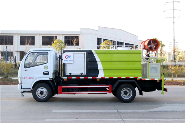 這款霧炮抑塵車配備了4缸柴油發電機組,噴灑效果可達40米。也屬于一款多功能抑塵車,在東風多利卡五噸灑水車的基礎上添加了霧炮噴灑功能,主要目的是降塵,和地面噴灑清洗。一車多用,既節省了購車成本,也達到了使用要求。