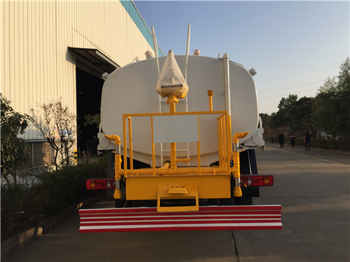 灑水車前裝有鴨形噴嘴或圓頭沖嘴,后面裝有圓柱開灑水噴嘴或蓮蓬頭噴嘴,后部有一工作平臺,裝配有水炮。后部還可裝8個噴嘴(選裝)噴水器一般用于沖洗街道,起除塵和降溫作用,其噴水器可以用調節噴嘴螺紋的方法改變噴水器的噴灑方向和角度,高射水炮可以用于城鄉園林綠化及應急消防。蓮蓬嘴可以澆落路中間噴水器沖起的灰塵,起到清潔空氣的作用。