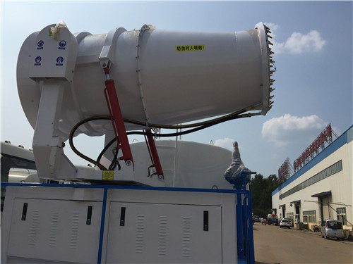 霧炮灑水車集灑水、噴藥于一體,罐體面積達6.563立方米,由電腦全程控制,噴射距離長達50余米,對噴射面積大、距離長、樹木高的綠化是最大優勢,而且可以提高幾倍的效率。