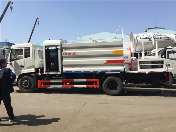 本車具有獨(dú)立的高、低壓兩套水路系統(tǒng),為抑塵車工作提供壓力水源。其工作原理是:利用高壓水泵產(chǎn)生的高壓水,經(jīng)噴水架的高壓噴嘴噴出,利用高壓水流的動(dòng)能,以高壓力、低流量的方式抑塵,超遠(yuǎn)射程,高效節(jié)水,能將路面的陳舊污漬抑塵干凈;或高壓水經(jīng)左(右)角噴噴出,清洗路緣、人行道及護(hù)欄隔離區(qū);使用高壓噴槍還可抑塵路標(biāo)、廣告牌、高架路等;噴霧系統(tǒng)具有強(qiáng)大的噴霧降塵、噴撒空氣消毒劑及調(diào)節(jié)空氣濕度功能。