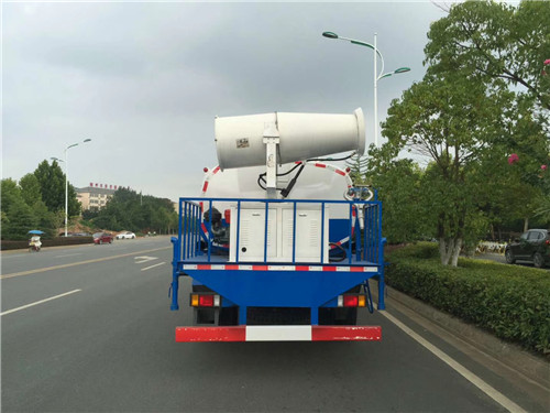 灑水車專用性能:具有前沖后灑、側噴(更換噴頭后變為側花灑)、后置式工作平臺(帶踏梯,四周有安全護欄)、平臺上設置有高壓水炮(可360°旋轉,可調成柱狀,也可調成霧狀,可調成:直沖狀、大雨、中雨、小雨、毛毛雨)。配備全國評比第一的杭州威龍專用灑水泵,選億豐泵或金龍泵,雜物過濾網,國標通用65型消防接口(可通過消防栓加水)、1套自流球閥系統(可自吸自排),2根引水鋼絲膠管(帶陰陽快速接頭),水位計。