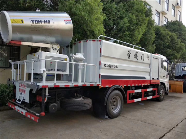 東風(fēng)天錦多功能抑塵車(chē),方形折彎箱體,容積10.3方,配專(zhuān)用灑水泵(可自吸自排),前沖、后灑、側(cè)噴、平臺(tái)高炮(高炮射程水平可達(dá)28米),可選裝30-120米普通霧炮,也可配置大功率全液壓霧炮(車(chē)子自身發(fā)動(dòng)機(jī)通過(guò)夾心取力器帶動(dòng)大功率液壓泵,從而帶動(dòng)風(fēng)機(jī)轉(zhuǎn)動(dòng);電動(dòng)遙控控制風(fēng)機(jī)左右、上下轉(zhuǎn)動(dòng)和出水量)優(yōu)點(diǎn):功率大,噪音小,射程更遠(yuǎn),更加環(huán)保。
