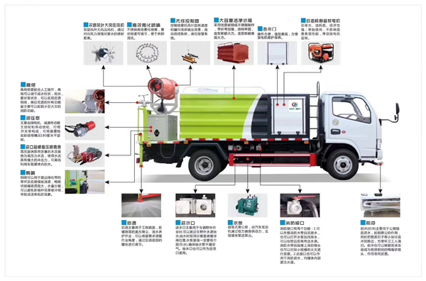 湖北程力專用車制造有限公司專業生產銷售抑塵車,抑塵車配件,環衛車,環衛車配件等一系列。今天要給大家講的是抑塵車前沖后灑和高壓水炮都是一些什么樣子的。