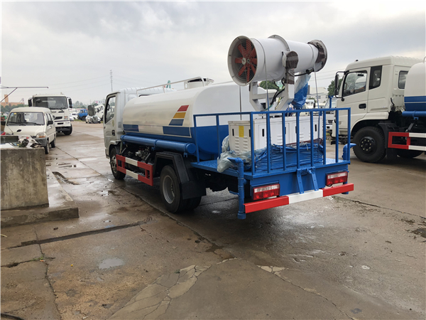 這款霧炮抑塵車配備了4缸柴油發(fā)電機(jī)組,噴灑效果可達(dá)40米。也屬于一款多功能抑塵車,在東風(fēng)多利卡五噸灑水車的基礎(chǔ)上添加了霧炮噴灑功能,主要目的是降塵,和地面噴灑清洗。一車多用,既節(jié)省了購車成本,也達(dá)到了使用要求。