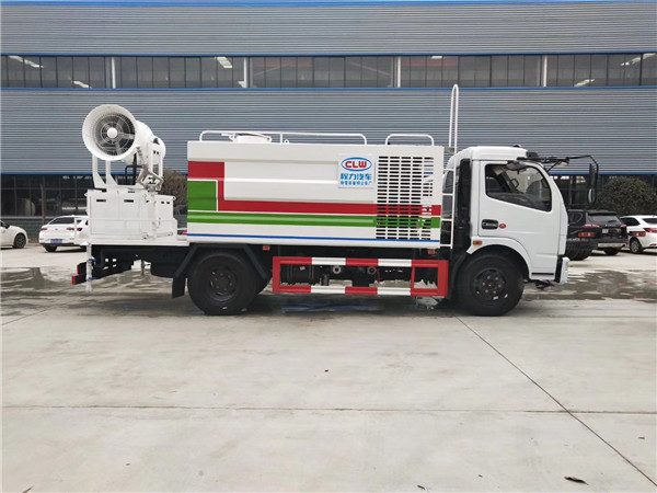 東風5噸抑塵車后灑:后部左右各安裝一個圓柱噴頭;各個進出水孔及操作部位要有指示說明,保證噴嘴噴出的水為均勻的扇面形。自動控制采用駕駛室內撬板開關控制,并粘貼標識,操作按鈕固定牢固。