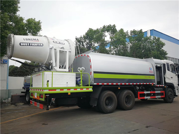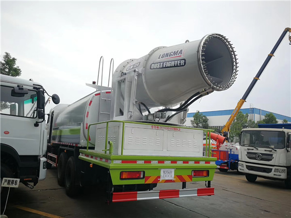 抑塵車又稱為:霧炮車、噴藥車。霧炮車噴射的水霧顆粒達到微米級,能有效分解空氣中的污染顆粒物、塵埃等,在霧霾天氣下用于降塵除霧,可以有效的緩解霧霾,其節水的特性同樣也可以用作灑水車使用。霧炮車還可以降塵、灑水,把樹上的灰塵洗掉。霧炮車噴灑出的水霧與懸浮在空氣中的PM2.5和PM10粉塵顆粒吸附、聚合、沉降,達到消除污染物和減霾的目的。盡管霧炮口徑巨大,但其噴灑耗水量僅為傳統灑水車的兩到三成,覆蓋面積和除塵效率卻高出20倍。既提高效率,也避免路面積水影響交通。