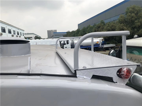 上裝配置:罐體有效容積12立方,采用5毫米厚武鋼碳板板自動焊接制作,配品牌大功率灑水泵,帶前噴后灑側噴,尾部平臺帶高位水炮,可自吸自排。前沖14米寬,水炮射程28米,自吸深度7米。