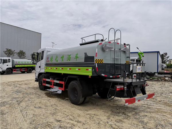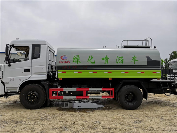 帶自流閥,消防接口。帶自吸泵,可將池塘的水直接吸入罐體內也可直接從城市街道消防栓上連接注水,吸入罐體內。罐前量管(觀察罐內水位)、罐后爬梯、罐上罐口帶簡易護欄、罐側雙炮筒、6米長4寸鋼絲塑膠管兩根,宣城東風12噸灑水車罐體表面雙層油漆工藝,防銹、耐腐蝕,其余有廠家標配??蛇x擇加裝加裝藥盤、氣動控制閥、噴藥設備、罐內防腐等。宣城東風12噸灑水車也可做噴藥車使用,可根椐用戶要求進專業噴藥防腐處理,也可做企業單位運水用,緊急時可做消防車使用。