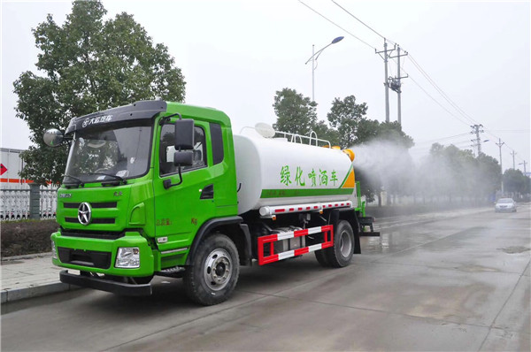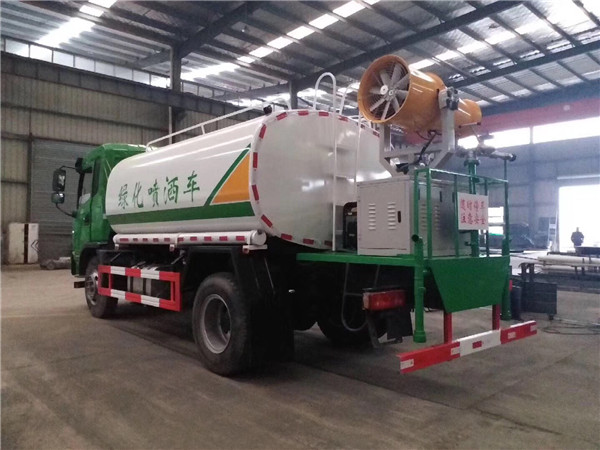 大運抑塵車配置有大功率抑塵泵,抑塵泵帶自吸功能,能垂直吸6米,吸力非常大,還帶有消防接水口,能快速接水,灑水裝置有前沖,后灑,側噴,后工作平臺,平臺上安全綠化抑塵水炮,其灑水車寬度14米,水炮射程可達30米,綠化抑塵水炮可旋轉360°,還可調節成水柱裝,霧狀,大中小可任意調解,射程非常遠。