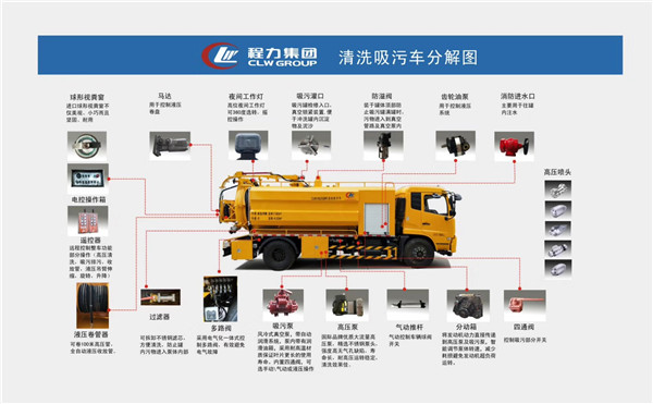 高壓清洗吸污車采用國內(nèi)技術(shù)領(lǐng)先的吸污車真空泵,吸力大,吸程遠(yuǎn),特別適合用于下水道內(nèi)的淤積物的抽吸、裝運(yùn)和排卸,可吸下水道泥漿、淤泥、石子、磚塊等較大物體;尤其是蓄水池里的泥漿,原油,碎石,城市下水道不便人工進(jìn)行清理或人工清理困難的地方,用吸污車來清理比較方便。緊急情況下可以用作灑水車,吸糞車,運(yùn)水車(內(nèi)部清理干凈即可),消防車。