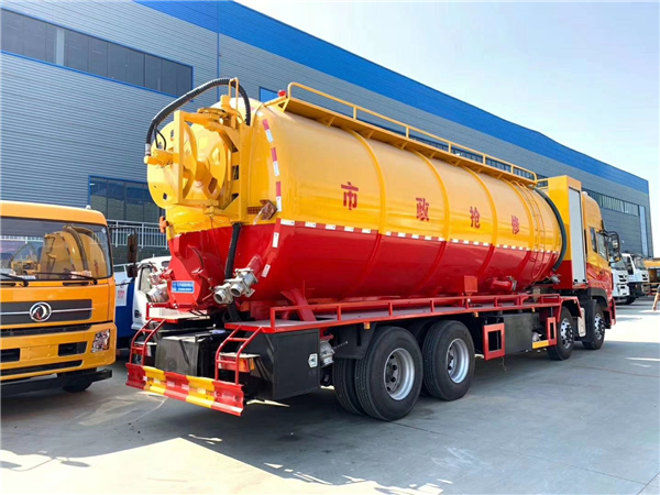 東風天龍高壓清洗吸污兩用車∶該車在高度真空狀態下進行吸泥、污水吸入作業。該車是由汽車底盤、取力器、傳動軸、真空吸污泵、壓力罐體、液壓部分、系統、真空壓力表、視糞窗、吸收裝置等組成。隨車合理搭配置國產、進口優質的柱塞高壓泵,通過高壓水流產生的強大壓力沖開被堵塞的管道。主要組成部分為罐體、高壓泵、液壓系統等。高壓清洗吸污兩用車適用于大、中、小城鎮換位、市政、農業、化工、廠礦企業、物業小區等部門的清洗疏通下水道和各種管道的沉積物,同時可進行下水道中污泥清撈、裝運、傾斜工作同時具有運水、排水應急消防等功能。