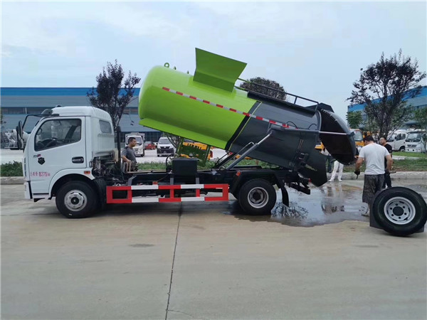 前面我有跟大家介紹過餐廚垃圾車可以一車兩用,除了清運垃圾還可兼顧灑水車功能。餐廚垃圾車之所以能帶灑水功能是因為餐廚垃圾箱可自由卸下,這樣就有了足夠的空間裝上水罐進行路面綠化灑水。5方餐廚垃圾車與垃圾車一樣,同是垃圾箱可自由上下完全脫離車體,所以在餐廚垃圾車上配備灑水罐是完全可行的。
