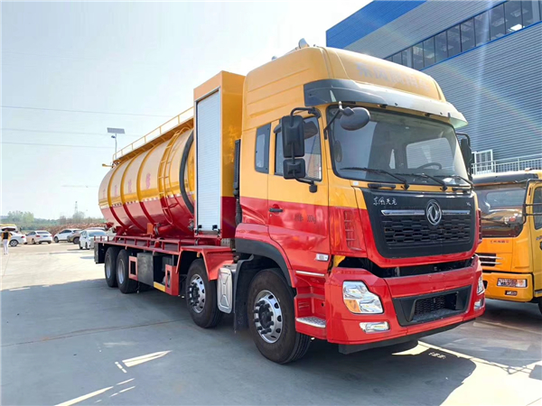 高壓清洗吸污車罐體是污罐的主體,其頂部開設有空氣孔,吸排孔。空氣孔與水氣分離器相通是空氣出入罐體的通道。入孔平時密封著維修時可以打開,吸排孔上連吸污膠管下連虹吸道污液出入罐體的通道。