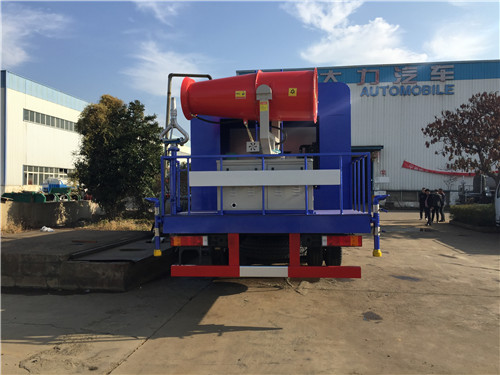 一臺“霧炮”灑水車可噴灑100多米?!办F炮”又叫環保除塵風送式噴霧機,安裝在車的后半部分?!办F炮”的原理是在液泵噴水后,利用風機將水噴灑出去,能噴灑120米遠、90米高。向天空噴灑水霧,達到抑制揚塵、綠化除塵等效果。
