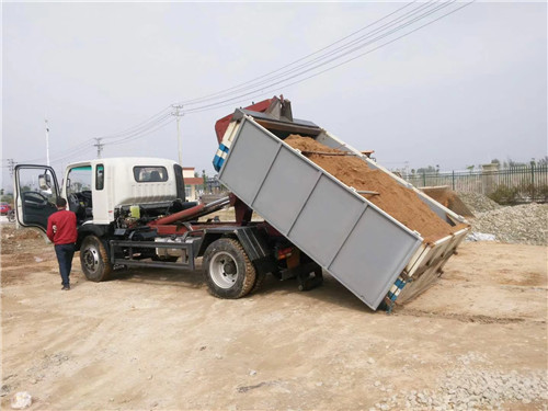 拉臂式垃圾車又稱勾臂式垃圾車、車廂可卸載式垃圾車。該車廣泛適用與城市街道學校垃圾處理,可一車配備多個斗,各個垃圾點放置多個垃圾斗,帶自卸功能,液壓操作,方便傾倒。拉臂式垃圾車是在底盤上設附車架,在附車架上安放垃圾箱,并安裝吊裝裝置。拉臂主液壓缸是吊裝、卸載垃圾的主要傳動裝置,控制其伸縮可完成吊裝垃圾箱、卸垃圾以及卸下空垃圾箱的工作過程,拉臂主液壓缸一端連接在附車架的尾端靠駕駛室一端,另一端則連接在拉臂上。