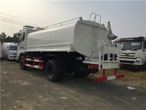 灑水車前裝有鴨嘴型噴霧或圓頭沖嘴,后面裝有圓柱形灑水砣,側噴花灑蓮花頭,車后部裝有高射噴槍。(選裝)