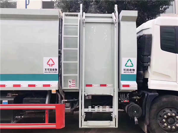 兩款壓縮餐廚垃圾車的卸載方式都是一樣的,都是通過壓縮廂內(nèi)的推盤推出達(dá)到卸載的目的。可將路邊垃圾桶內(nèi)垃圾收集入垃圾廂內(nèi),通過后壓縮裝置將垃圾車壓縮成塊運(yùn)輸,節(jié)省了垃圾容積,加快了效率,沒有二次污染。
