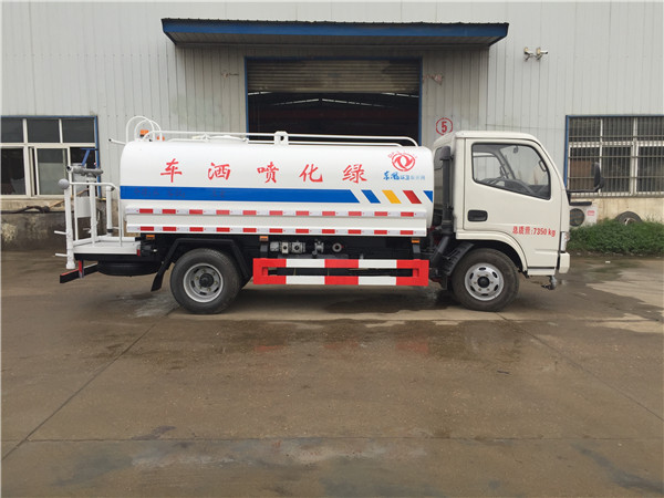 灑水車的工作平臺主要采用花紋防滑板制作而成,防滑板的厚度5毫米,平臺是寬度50-70公分,高度60-80公分,主要是便于工作人員安全操作而設計的尺寸,另外工作平臺上還設計的有腳踏板,便于工作人員上下,平臺上面安裝的綠化灑水炮,主要用于路面沖洗,園林綠化,以及應急消防。綠化灑水炮的工作狀態,可以360度旋轉,射程30米左右,可以調節成大雨、小雨、毛毛雨和柱狀。后灑裝置主要用于路面養護,噴灑寬度15米左右。側噴主要用于公路綠化帶噴灑綠化。