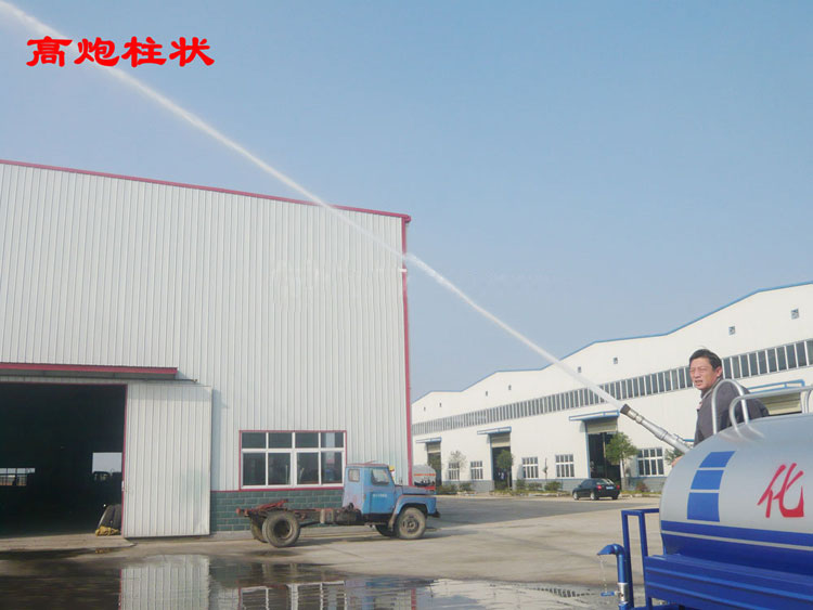 ◆ 灑水車(chē)綠化炮功能:綠化高炮位于灑水車(chē)的后工作平臺(tái),可360度全方位旋轉(zhuǎn),并可調(diào)節(jié)多種直沖狀、大雨、小雨、毛毛雨、霧狀噴灑、噴射方式--(柱狀射程≥28m;霧狀射程≥15m)。綠化炮霧狀噴灑可用于園林綠化噴灑作業(yè);綠化高炮噴射一般用于沖洗澆灌樹(shù)木;綠化炮沖洗一般用于護(hù)欄沖洗、高空建筑物沖洗等.