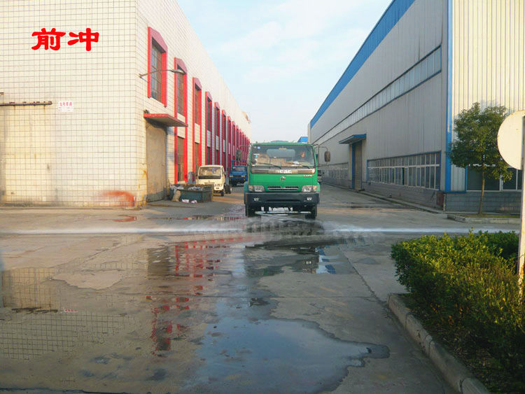 - 灑水車(chē)前沖圖片:前沖為最常用的灑水車(chē)功能之一,常用于環(huán)衛(wèi)街道沖洗、壓塵、降溫等,平時(shí)我們見(jiàn)到的公路灑水車(chē)即是用的這一噴灑功能進(jìn)行路面沖洗功能。