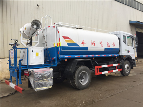 前沖主要是對路面進行沖洗,主要用于環衛路面清洗,后灑主要用于降塵,右位花灑也用于降塵也可以用于澆灌樹木。后工作平臺高炮就厲害了,這個抑塵車后工作平臺高炮能用于消防滅火,也能用于澆灌距離遠又高的樹木,近的地方可用霧狀進行澆灌,就是多功能灑水炮。