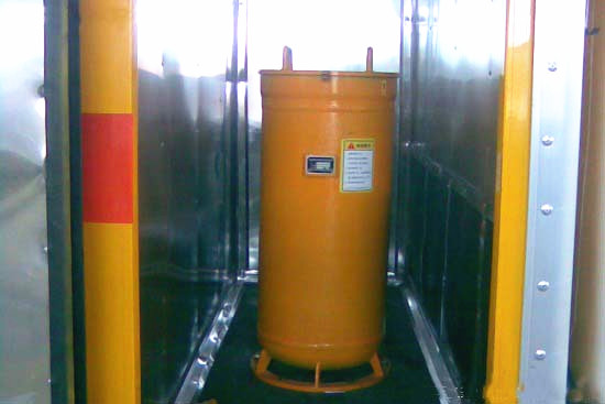 抗爆容器宜裝在后倉內(nèi)。隔離墻的厚度不應(yīng)小于80mm。墻的夾層內(nèi)應(yīng)裝入能吸收爆炸沖擊波能量且不燃(或阻燃)的材料;安裝抗爆容器時(shí),泄爆孔的位置應(yīng)避免與汽車底盤的重要零部件相對(duì)峙。
