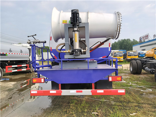 6、抑塵車專用灑水泵:天氣溫度在零度以下時,應把應放盡罐體、泵內及管路內余水,防止灑水泵凍裂,在灑水泵下端有一個手動放水閥門打開就可以了。再次使用時,把灑水泵放水閥門關上,再加上一定的引水就可以使用。