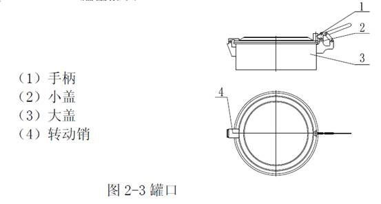 罐口組件:大蓋由螺栓緊固在罐口頸板上,由一個支銷和一個護板小蓋連接在一起,順時針轉小蓋之上手柄可使小蓋壓緊。反轉,脫開耳板后,小蓋則可打開,大蓋上開有一個Φ 30 的孔,以便在加水過程中,使罐內的壓力與大氣壓力基本相同。