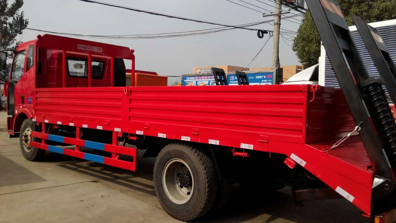 上圖為解放J6平板運輸車運輸車運輸裝載機毫無壓力